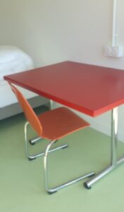 Les mobiliers utilisés pour créer les bureaux et ensemble de cuisine des étudiants sont essentiellement issus de collectes dans les restaurants universitaires CROUS de Rennes (du circuit court étudiant de fait !).