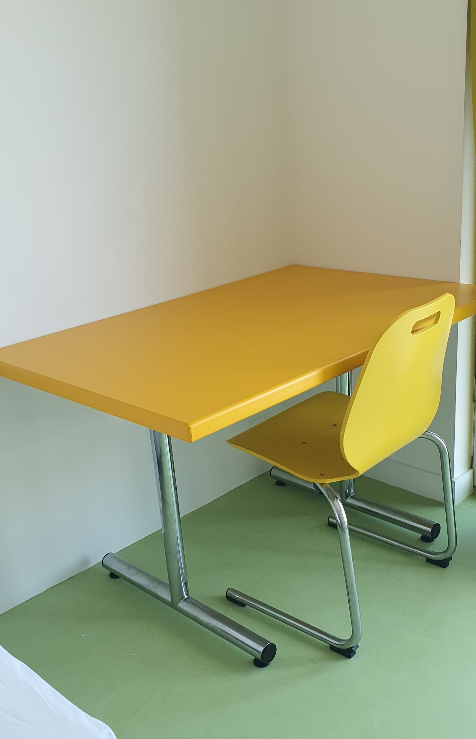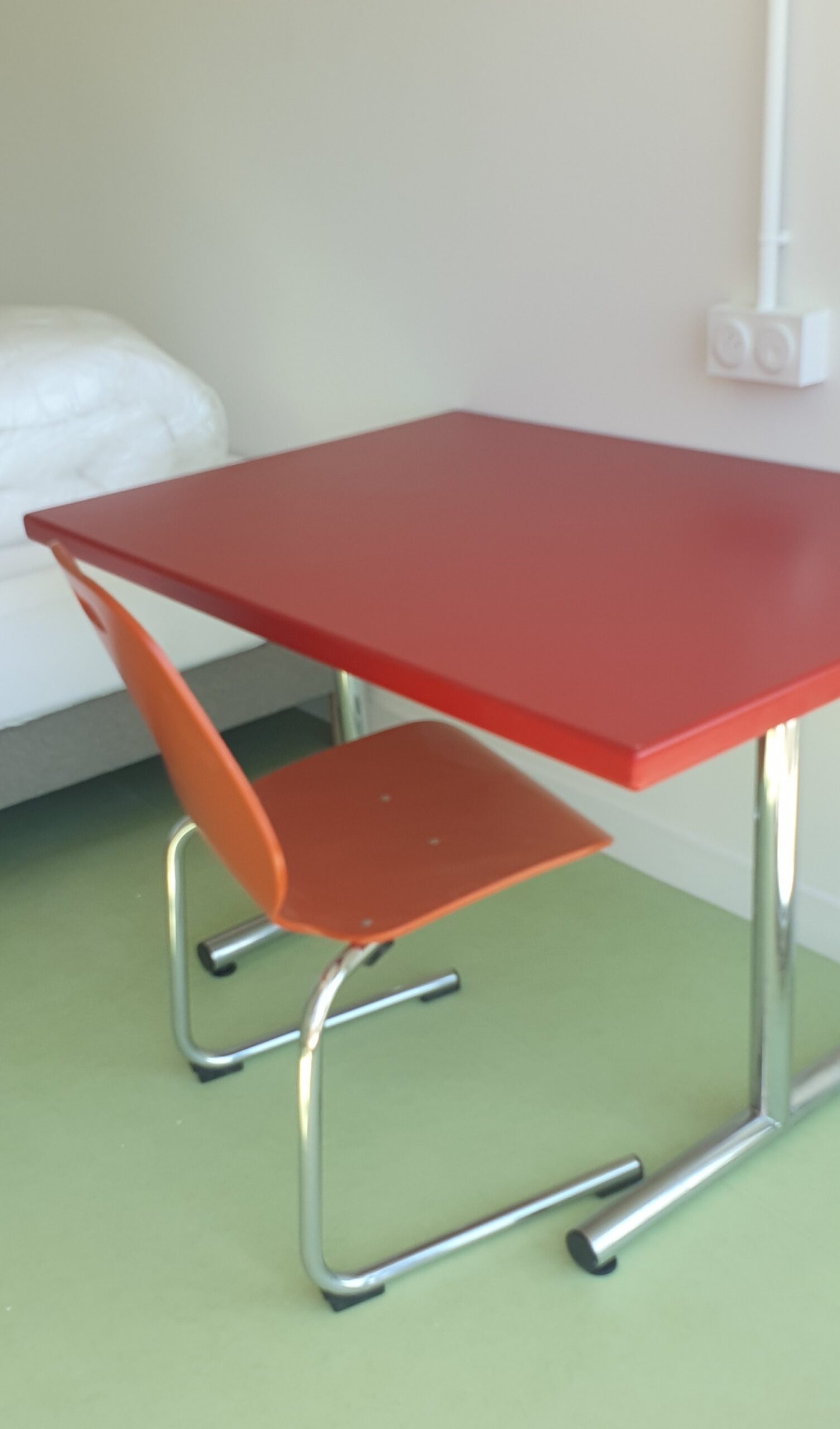 Les mobiliers utilisés pour créer les bureaux et ensemble de cuisine des étudiants sont essentiellement issus de collectes dans les restaurants universitaires CROUS de Rennes (du circuit court étudiant de fait !).