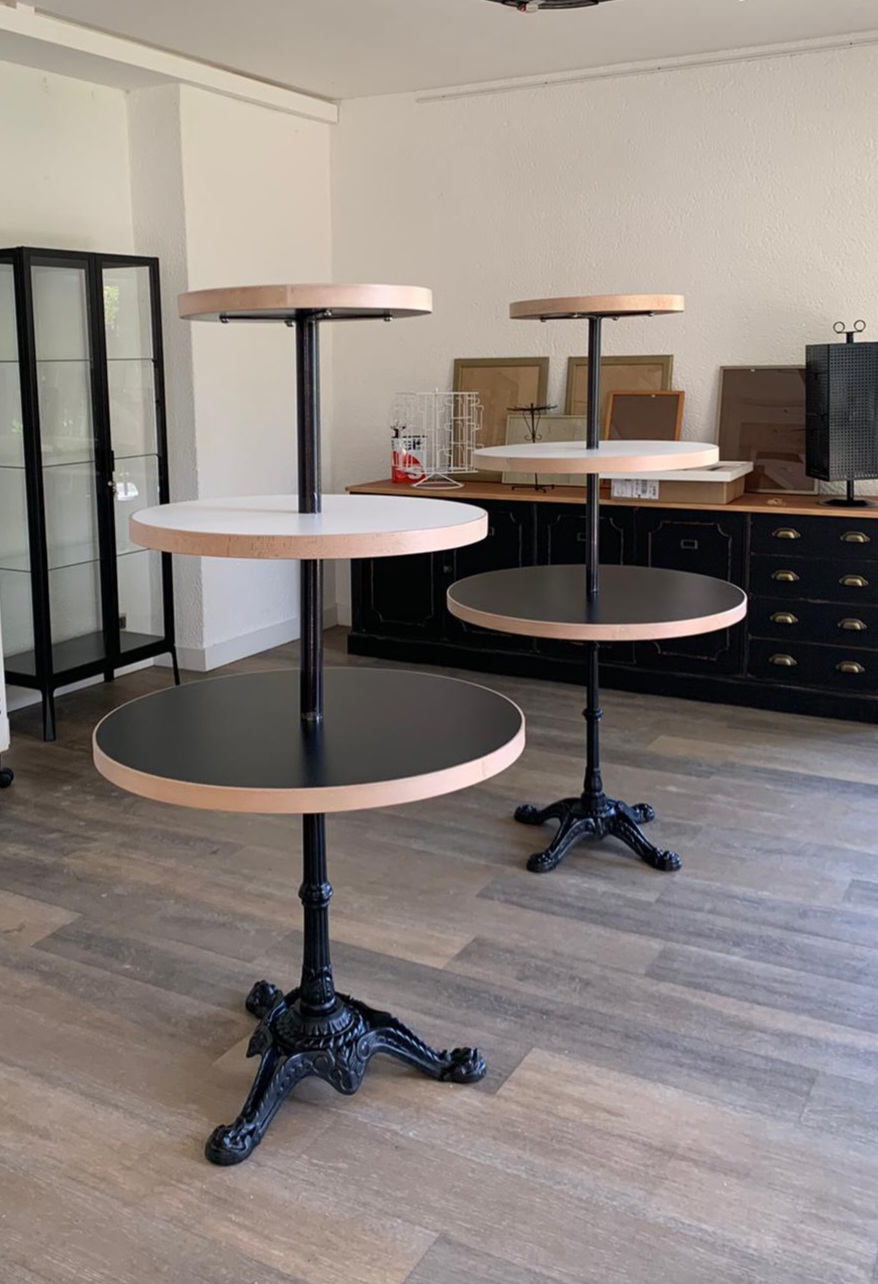 Réalisation de 3 podiums pour l’office de tourisme de Lohéac en partenariat avec Morgane Fraga, designer d’intérieur éco-responsable